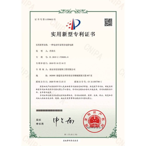 一種可升降的防破壞安全汽車充電樁 實用新型專利證書