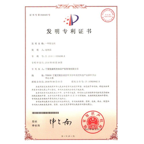 一種穩(wěn)定耐用的室外配電柜 發(fā)明專利證書