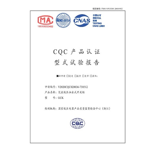 GCK(1600A~4000A)交流低壓抽出式開關(guān)柜 CQC型式試驗報告