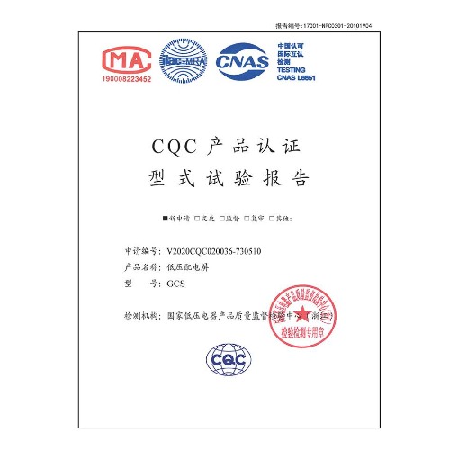 GCS(1000A-2500A)-低壓配電屏-CQC型式試驗報告