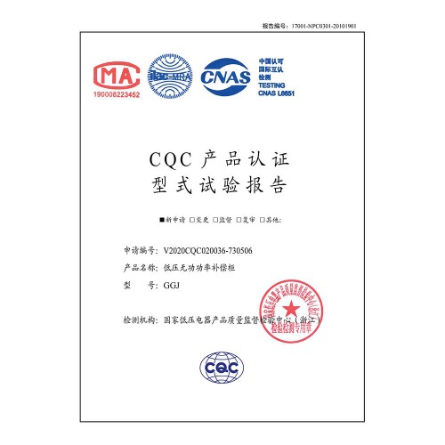 GGJ(400A)-低壓無功功率補償柜-CQC型式試驗報告