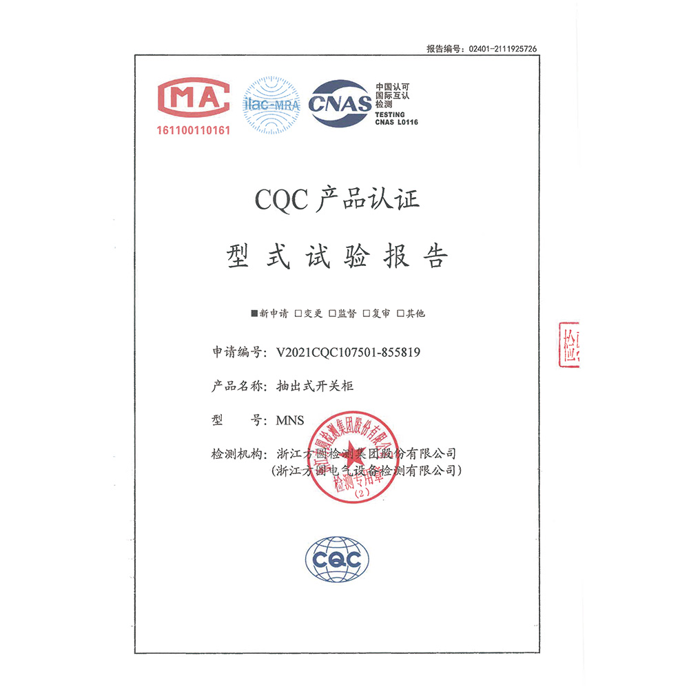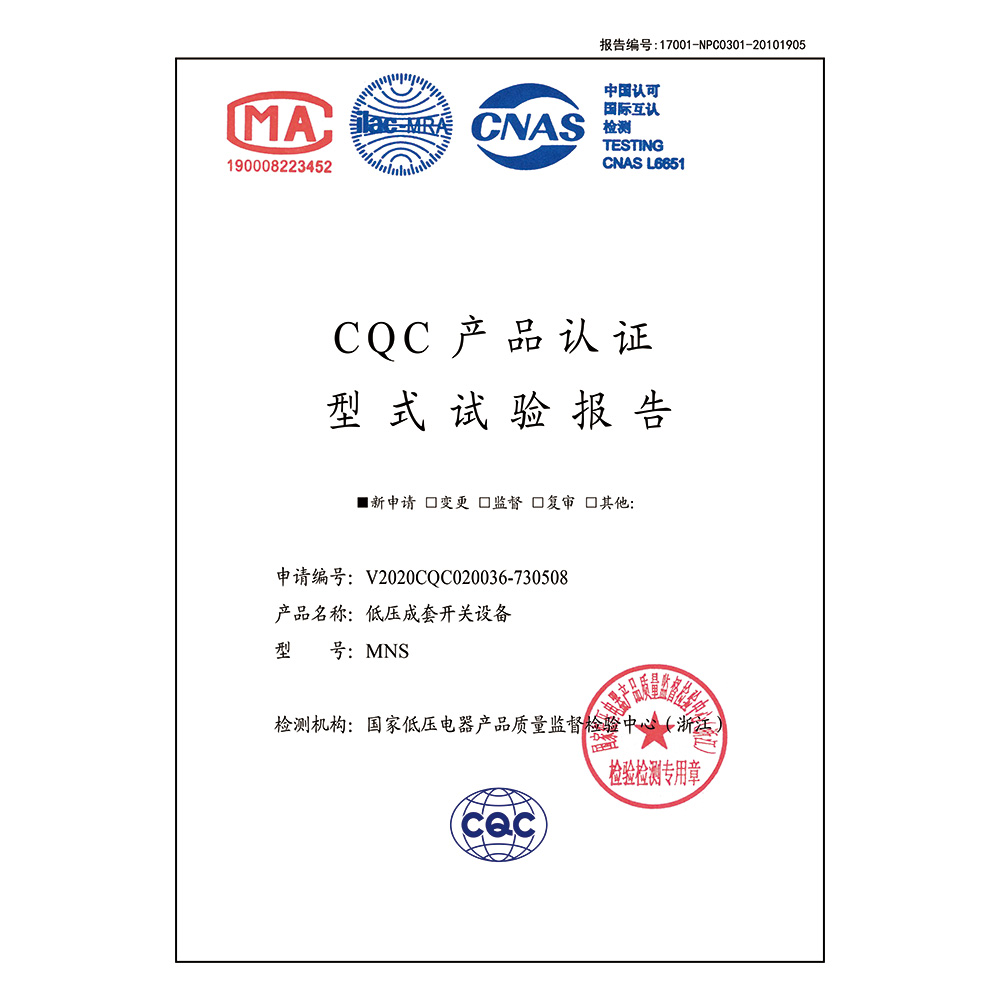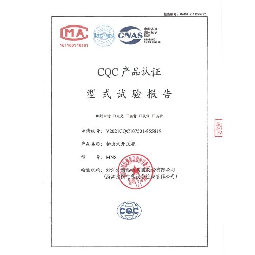 MNS(1000A-2500A)-低壓成套開關(guān)設備-CQC型式試驗報告
