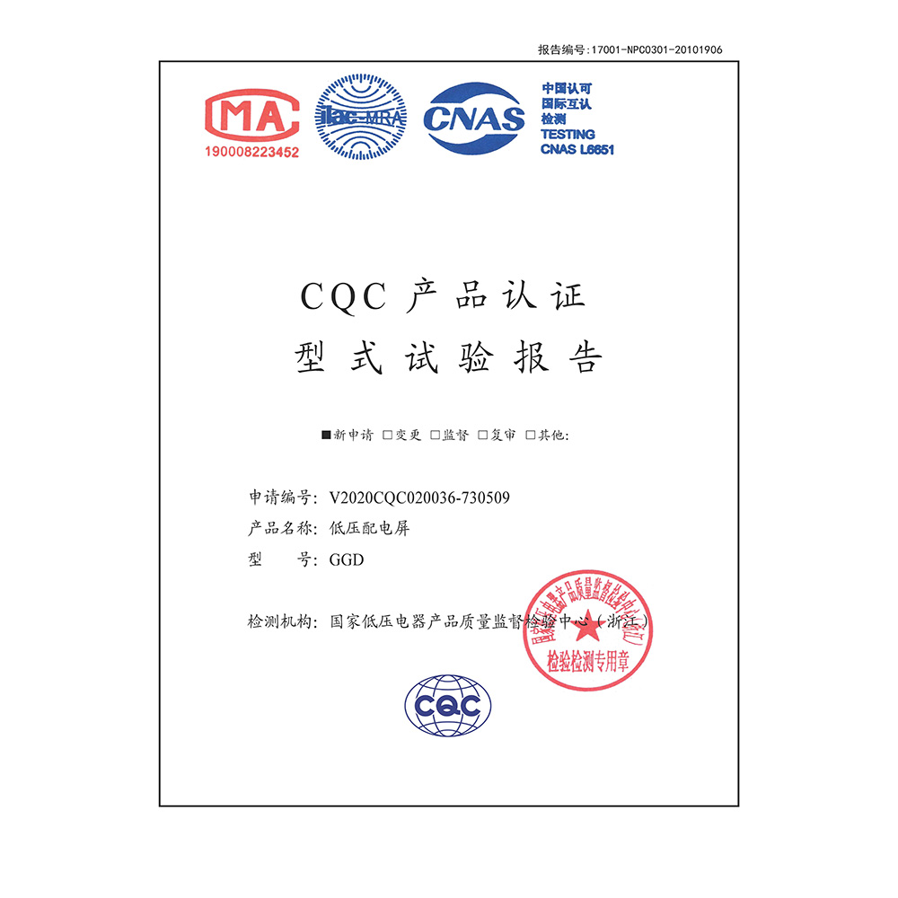GGD(400A-1600A)-低壓配電屏-CQC型式試驗報告