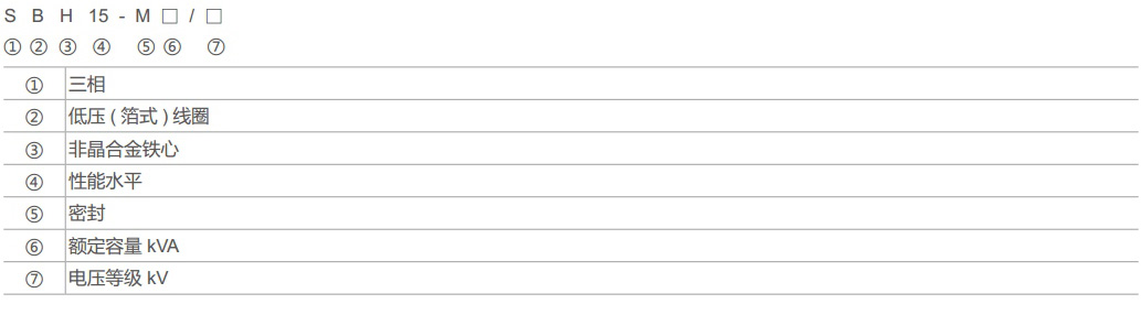 SBH15-M全密封油浸式非晶合金變壓器適用于交流50Hz、額定工作電壓10kV及以下的電力系統(tǒng)中,作為石油、冶金、化工、紡織、輕工等企業(yè)及粉塵較大場所的配電變壓器。 產(chǎn)品符合標(biāo)準(zhǔn):GB1094.1、JB/T103180?產(chǎn)品型號說明