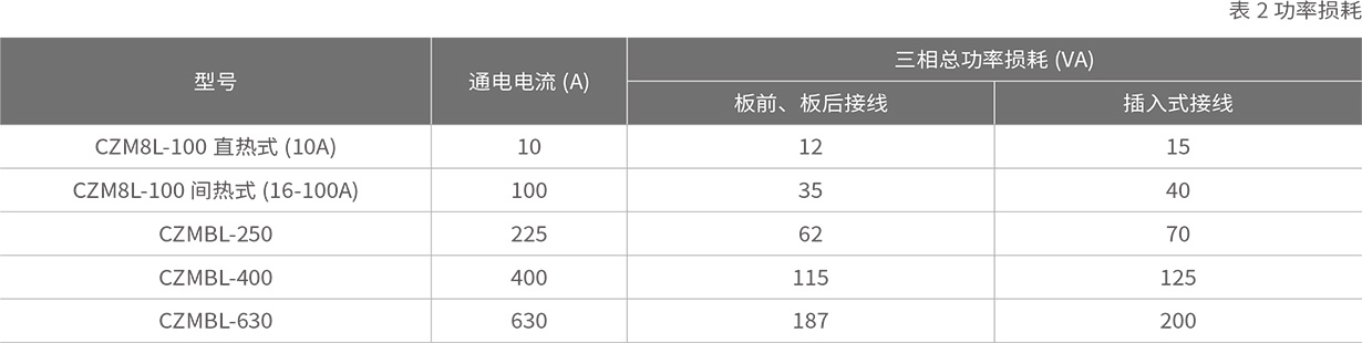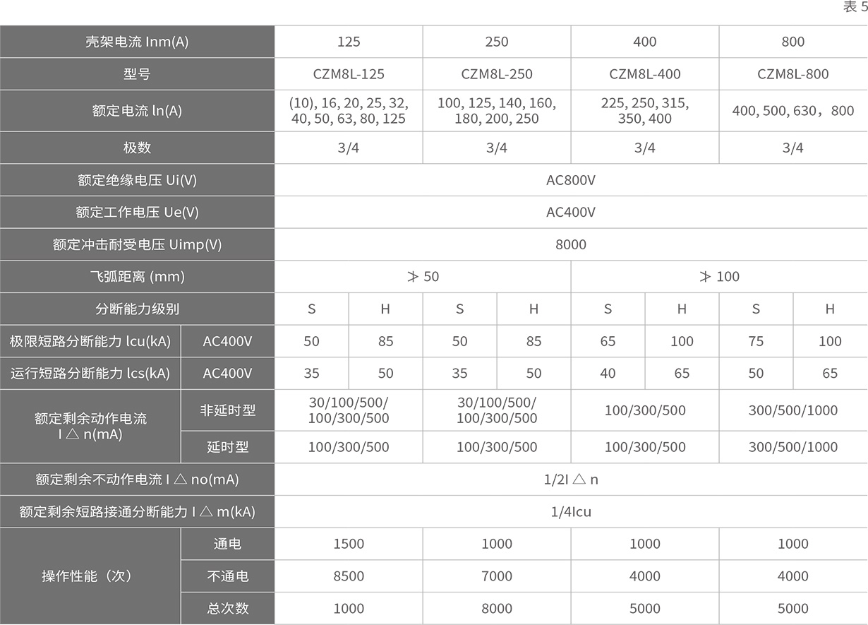 適用工作環(huán)境及安裝條件與 CZM8 相同,技術性能指標見表 1、表 2、表 3、表 4、表 5